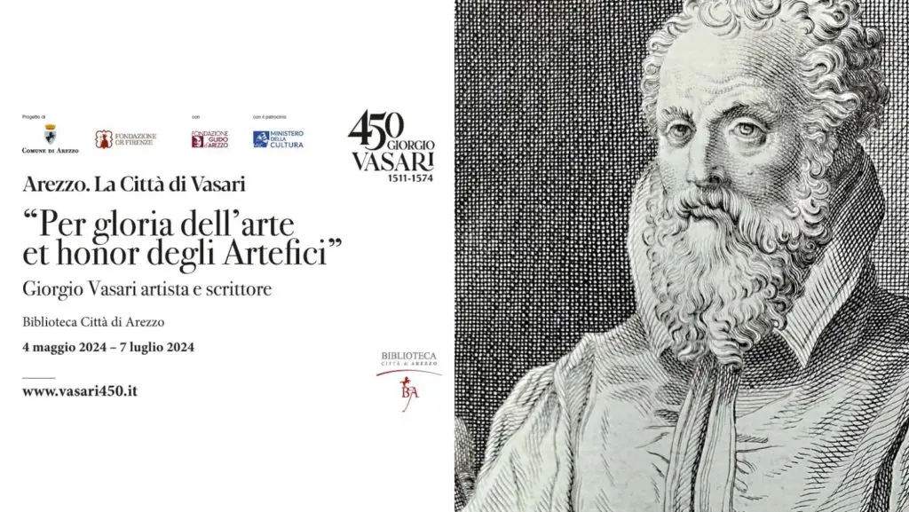 Inaugurata il 3 maggio, Per gloria dell’arte et honor degli Artefici: Vasari scrittore e artista immortale” porta alla luce i tesori bibliografici del catalogo della Biblioteca Città di Arezzo tra cui testi antichi, stampe e manoscritti. Durante il periodo di apertura è inoltre possibile assistere a un ciclo di conferenze e letture con scrittori, accademici e specialisti per approfondire la figura del Vasari. La mostra bibliografica dei testi antichi e dei manoscritti della Biblioteca di Arezzo, a cura della dott.ssa Elisa Boffa, viene proposta in concomitanza con la mostra a cura di Cristina Acidini e Carlo Sisi presso la Galleria d’Arte Contemporanea e Moderna di Arezzo e intende esporre manoscritti, stampe e libri antichi e moderni che fanno parte dell’ingente patrimonio documentale di questa istituzione. L’esposizione è divisa in cinque sezioni: “Le origini di Giorgio: famiglia e formazione”, in cui viene dato risalto alla provenienza di Vasari e alla sua famiglia attraverso il ritratto del bisnonno Lazzaro e lo stemma a colori della famiglia Vasari, oltre a tre ritratti dell’artista realizzati con incisione calcografica; “Vasari architetto e pittore”, in cui si vuole mettere in luce alcuni aspetti importanti delle sue opere anche con l’esposizione di un manoscritto unico che riporta il contratto con sottoscrizione autografa dell’artista per la realizzazione dell’affresco raffigurante Ester e Assuero del 1548 e i due manoscritti Palliani e Sinigardi che riportano la testimonianza dell’apposizione della prima pietra per la costruzione delle celebri Logge; “Le Vite un best-seller dell’epoca moderna” che illustrerà le diverse edizioni della celebre opera monumentale che segna l’inizio della storia dell’arte moderna, partendo dall’edizione più bella e completa del 1568 stampata a Firenze presso i Giunti che seguì la princeps del 1550 di Torrentino; “Altri scritti dell’artista” in cui sono incluse tutte le altre opere del Vasari come “I Ragionamenti” pubblicati postumi nel 1588 dal nipote Giorgio il Giovane; “Ad imperitura memoria” che è dedicata a tutti gli scritti e i contributi fatti al Vasari successivamente alla sua morte fino al XX secolo, dal Landucci a Del Vita a Cesare Guasti.